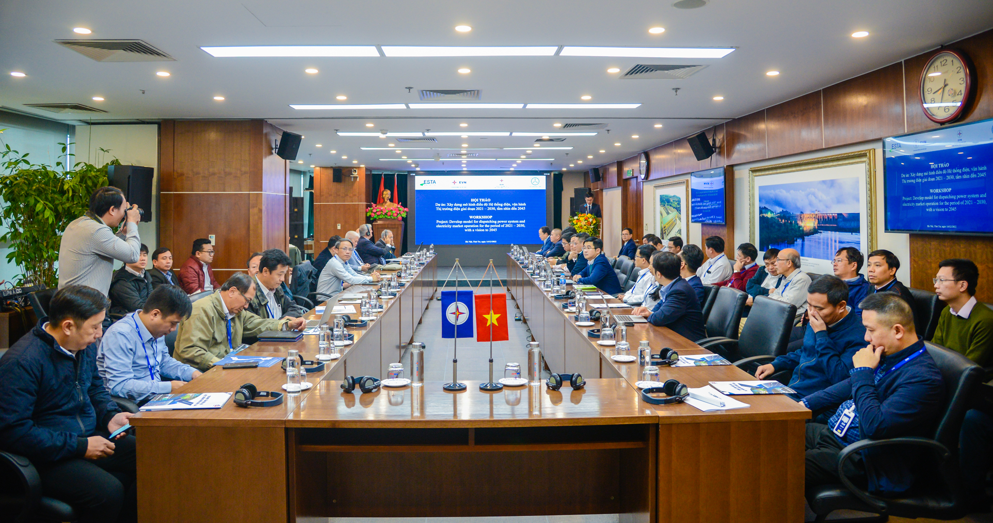 On December 14th, 2022, National Load Dispatch Centre (EVNNLDC) organized a workshop on “Consulting Service to develop model for dispatching power system and electricity market operation for the period of 2021-2030, with a vision to 2045”. Contents in the conference were co-presented by the Joint Venture Consulting ESTA International LLC (USA) and Vietnam Power Resources Partners (Vietnam PRP Corp.), with the participation of representatives from Electrical Regulatory Authority of Vietnam (ERAV), Electrical and Renewable Energy Authority (EREA), World Bank, Vietnam Institute of Energy, Vietnam Electricity Corporation, National Power Transmission Corporation (EVNNPT), 5 EVN-owned Power Corporations, School of Electrical and Electronic Engineering under the management of Hanoi University of Science and Technology, as well as all Regional Load Dispatch Centers. The main objective of the workshop was to discuss the challenges that Vietnam’s power sector has to face over the next two decades and propose recommendations on dispatching and operating models for both the Vietnam power system and electricity market.